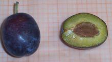 debel, elipsoidne oblike, temno modro vijolične barve s poprhom, meso čvrsto, zeleno rumeno, cepka